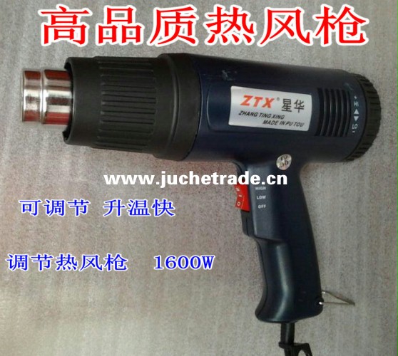 使用电压:220V/AC;电源插头:二插(可根据客户的要求,装配各国标准插头);无极调温,温度范围:60~550度;颜色:蓝色.主要应用在收缩膜、收缩管加热,塑料管弯曲加热,高温去除旧油漆、广告纸、电脑绣花的毛绒、屠宰动物绒毛、设备污垢的清理等。专业生产,质量稳定,欢迎选购.