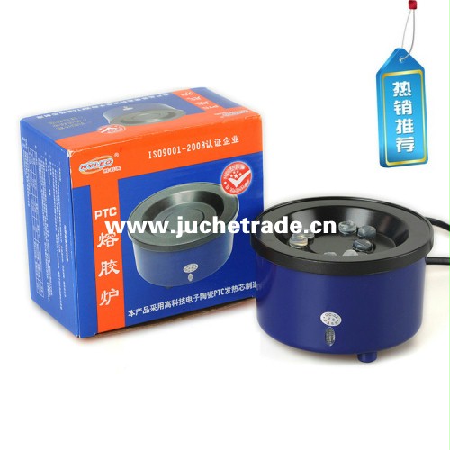 本产品采用高科技陶瓷PTC热敏电阻器作为发热元件,升温速度快,恒温准确,使用寿命长。电气绝缘强度在3750V/分钟时不被击穿,耐电压330V/3分钟。锅体采用优质环保合金铝经过特殊电镀处理,具有不粘锅的优点.电源线长度为1.5米,胶炉外壳采用耐高温工程塑料,绝缘性能好,安全可靠,是手工艺品,发制品,圣诞礼品,毛绒玩具,皮革布料,食品包装,彩盒包装,电子电器等厂家粘接产品的理想工具。