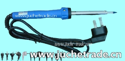 1. 将电烙铁插在220V的电源,进行预热。请根据焊接物的大小选择不同功率的电烙铁。